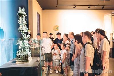 在環形吊燈下,有一個大型的旋轉坡道,很多游客在此拍照打卡。一位游客感慨道:“曾經在三星堆博物館舊館也有類似的一條旋轉坡道,沒想到新館將這個坡道‘繼承’下來了?!毙屡f館元素的傳承與創新,讓不少游客感受到一份親切感和熟悉感。