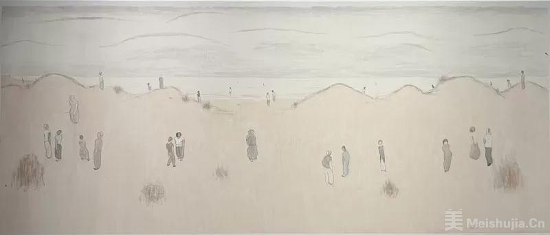 杜小同筆下人物的“笨拙感”,是其藝術中最具精神性的部分。在一個崇尚技巧、追求流暢的時代,他主動選擇“木訥”與“生澀”,這是一種自覺的“去技術化”;在一個崇尚效率、追求流暢的時代,這種“笨拙”是對“技術完美主義”的公開挑釁。它讓我們看到,過度追求筆墨的“帥”與“熟”,反而會扼殺藝術最珍貴的“生”與“真”。這種“反熟練”,是對水墨系統中過度強調筆墨趣味的一種反動,更是對當代人精神處境的隱喻——那種無所適從的疏離感,那種在龐大自然與復雜社會面前的渺小與孤獨。他的人物從不彼此呼應,而是各自獨立存在,這種孤寂狀態,恰恰是現代人精神世界的真實寫照。