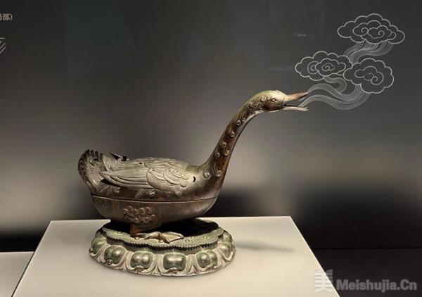 11月11日,大都會藝術博物館藏明代雁形銅熏爐在上海博物館東館展出?!≈行律缬浾?康玉湛 攝