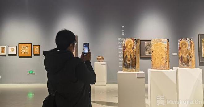 值得注意的是,展覽以莫高窟第328窟復制彩塑作為開篇,呈現融中國繪畫與雕塑傳統技法、審美情趣于一體的石窟藝術。在佛陀低眉、菩薩含笑、飛天衣帶的佛國圣境中,觀眾可沉浸感受敦煌藝術的雄偉與瑰麗。